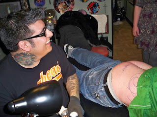 So, I pouted, bullied, and strong armed Trevor to get “MeanRed” tattooed on his booty. Chico really liked that idea.