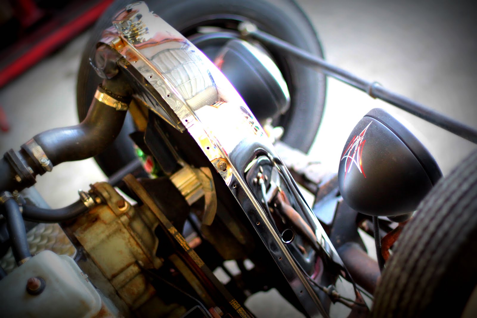 Rear End – ford 9 inch rear with 4:11 gears, buggy spring with 2 link front end-4inch droped axle, 1940 ford spindles, brakes, and radius rod arm body-1930 model a cab, chopped 6 inches, channeled 4 inches