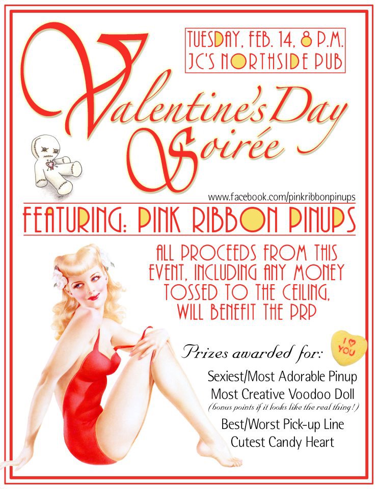 For those that want to get out tomorrow on Valentine’s Day and do something a little different, join the Pink Ribbon Pinups at JC’s Northside Pub for a Valentine’s Celebration that does not include your normal treats. There are a couple contests that sound fun…my favorite is the one for Most Creative VooDoo Doll.