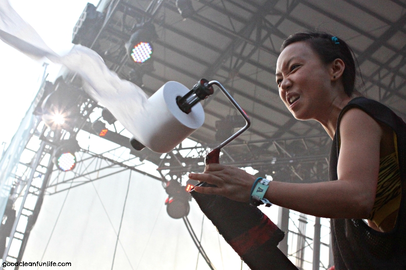 As I mentioned, it was our first festival. I should say we are veterans of HFStivals and countless shows at all types of venues, but this was our first time attending a multi-day event. We wanted to get the whole experience so we decided to camp. Yep, we roughed it -“sleeping” butt to nut (in very close proximity) to several hundred of our newest, closest friends. This was an experience and felt exactly like being an embedded reporter in the party zone. DubStep pizza late night from one of the half a dozen food trucks that were set up to serve the campers was definitely a popular spot (amazing food too).