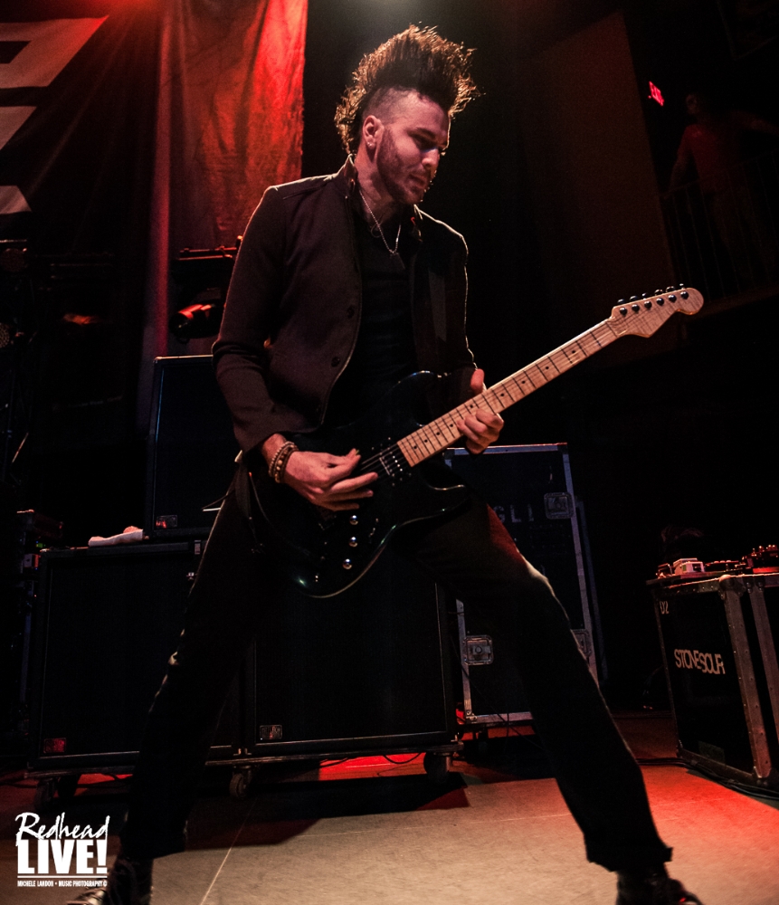 Next up was a Baltimore favorite…Pop Evil. I smile as their banner drops from the three storied high ceiling at Rams Head and a roar goes up in the crowd. As their road crew sets up with an incredibly fast turn around, I found myself disappointed with the amount of space left to Pop Evil and their gear. Rams Head Live is a good size stage but they had less then half to set up on. However, the upside to this situation is that Joshua “Chachi Riot” Marunde’s drum kit was even closer to the crowd for his fun to watch high energy portion of the show! The lights dimmed and Motley Crue played on the PA system getting the crowd energized. I’m betting this was a tip-of-the-hat to a band that was one of Pop Evils early influences. They also collaborated with Mick Mars on the song “Boss’ Daughter” from 2010’s War of Angels.